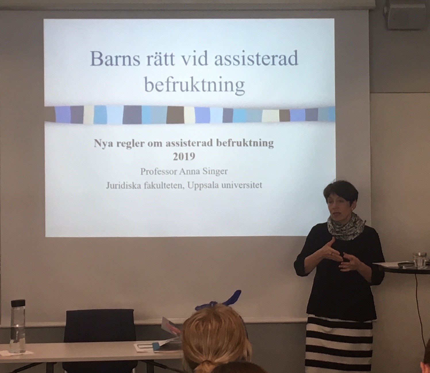 Anna Singer, professor i civilrätt vid Uppsala Universitet, är expert på juridiska frågor gällande familjerätt. Hennes föreläsning handlade om det viktiga perspektivet inom assisterad befruktning – vilka rättigheter barnet har.